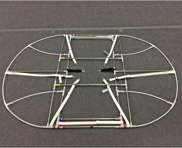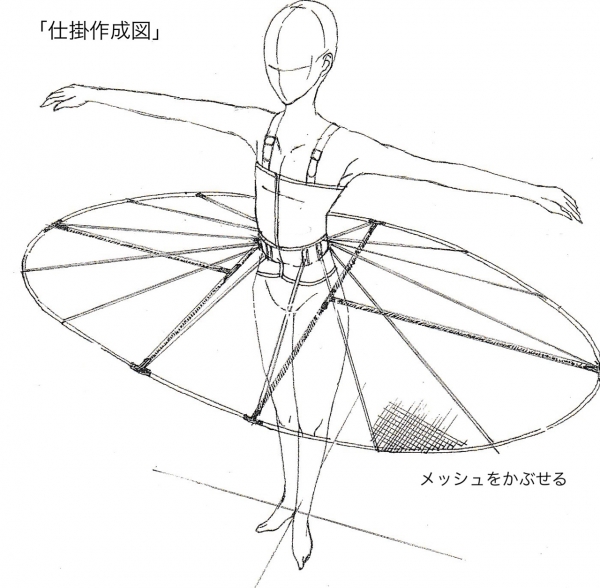 〇 身長が様々な子供が5,6人隠れるほどの大きさのスカートに仕上げる為に「仕掛け付きのインナー」を製作。スカートの中の子供たちに衣裳が絡まないようにする事が大切。